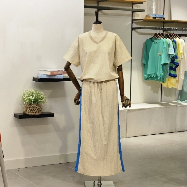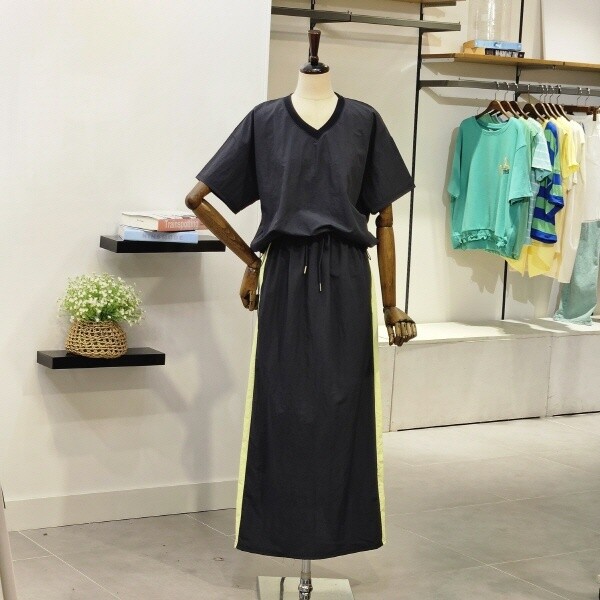 바스락 거리는 라이트한 나일론 소재로 가볍고 편하게 스타일 내기 좋은 스커트 SET 소개해요. 가볍게 외출하실때나 여행, 산책할때나~ 홈웨어로도 입기 좋아요