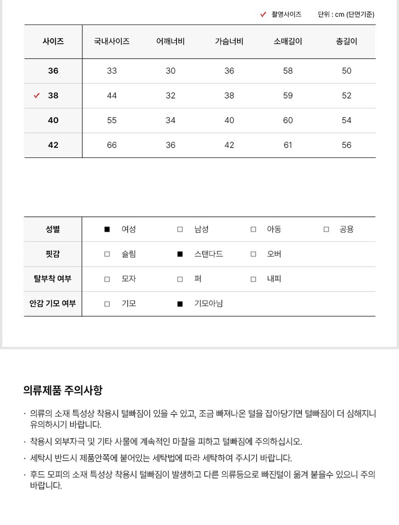 | 3. 치수 | 32,34,36,38,40,42,44,46 |
