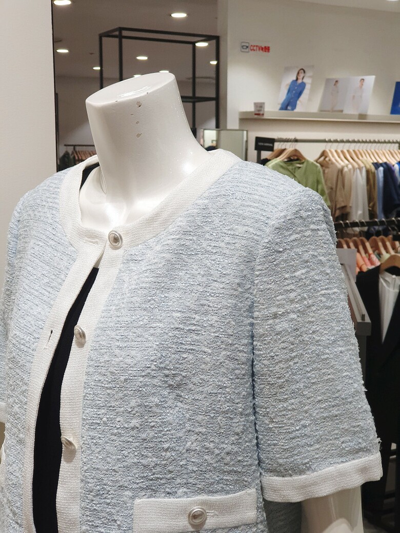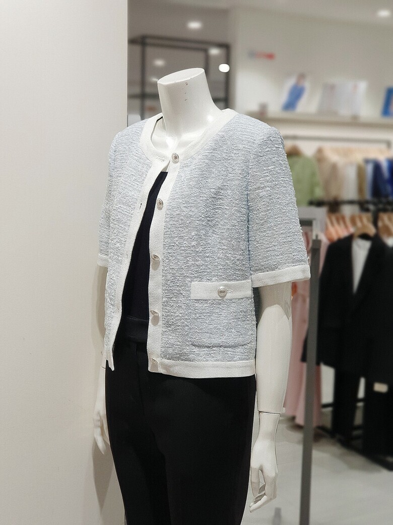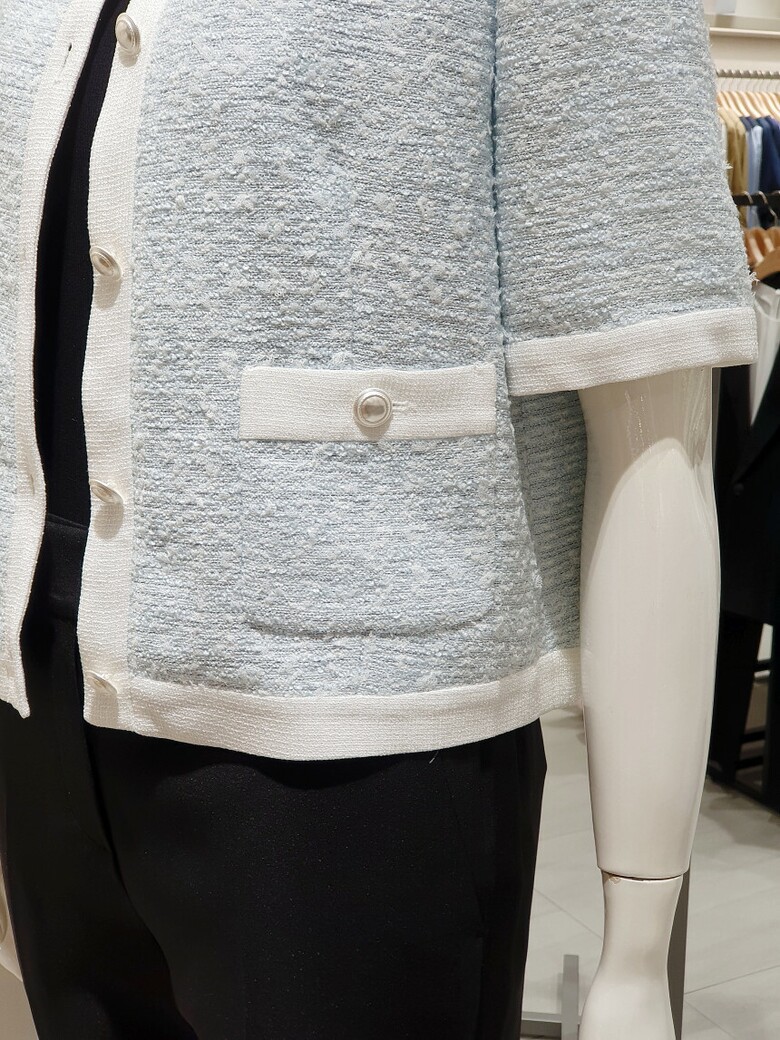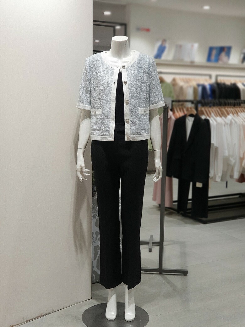 크롭 기장과 클래식한 버튼 디테일을 더해주며