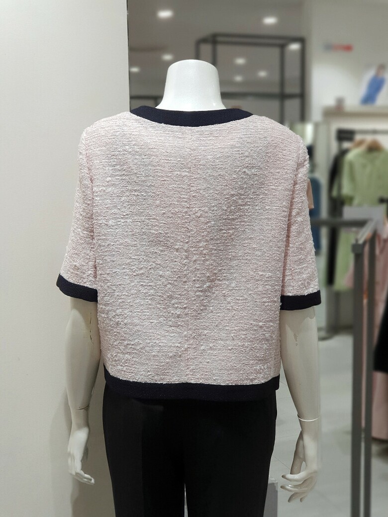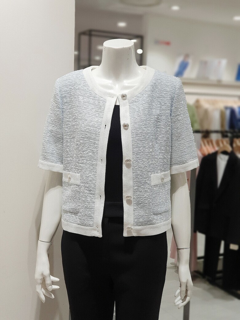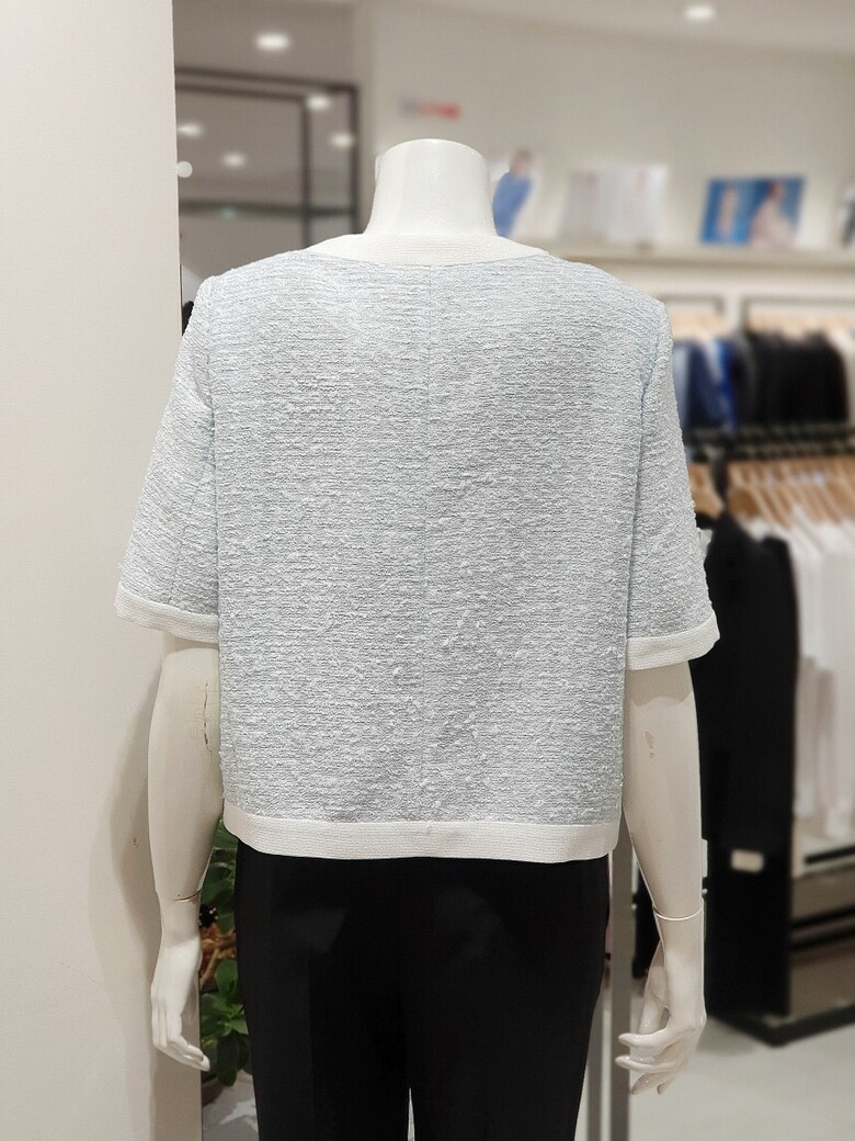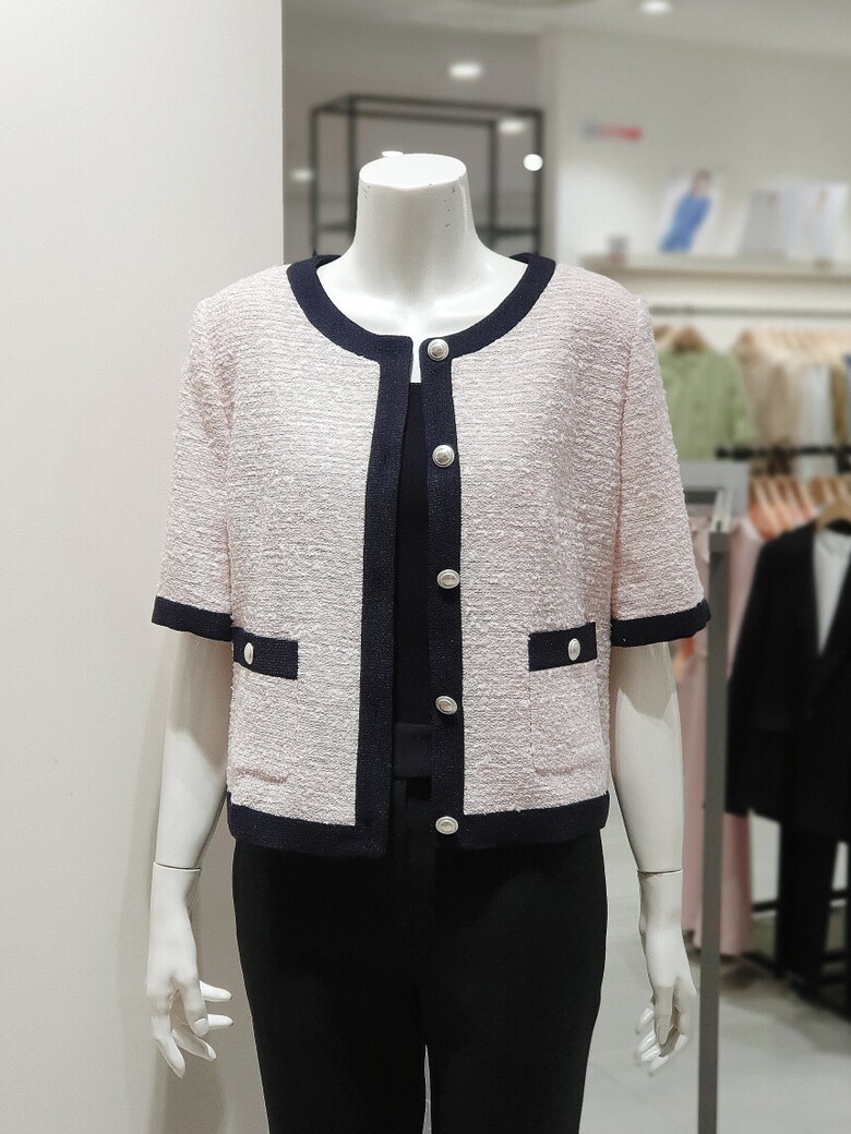 크롭 기장과 클래식한 버튼 디테일을 더해주며