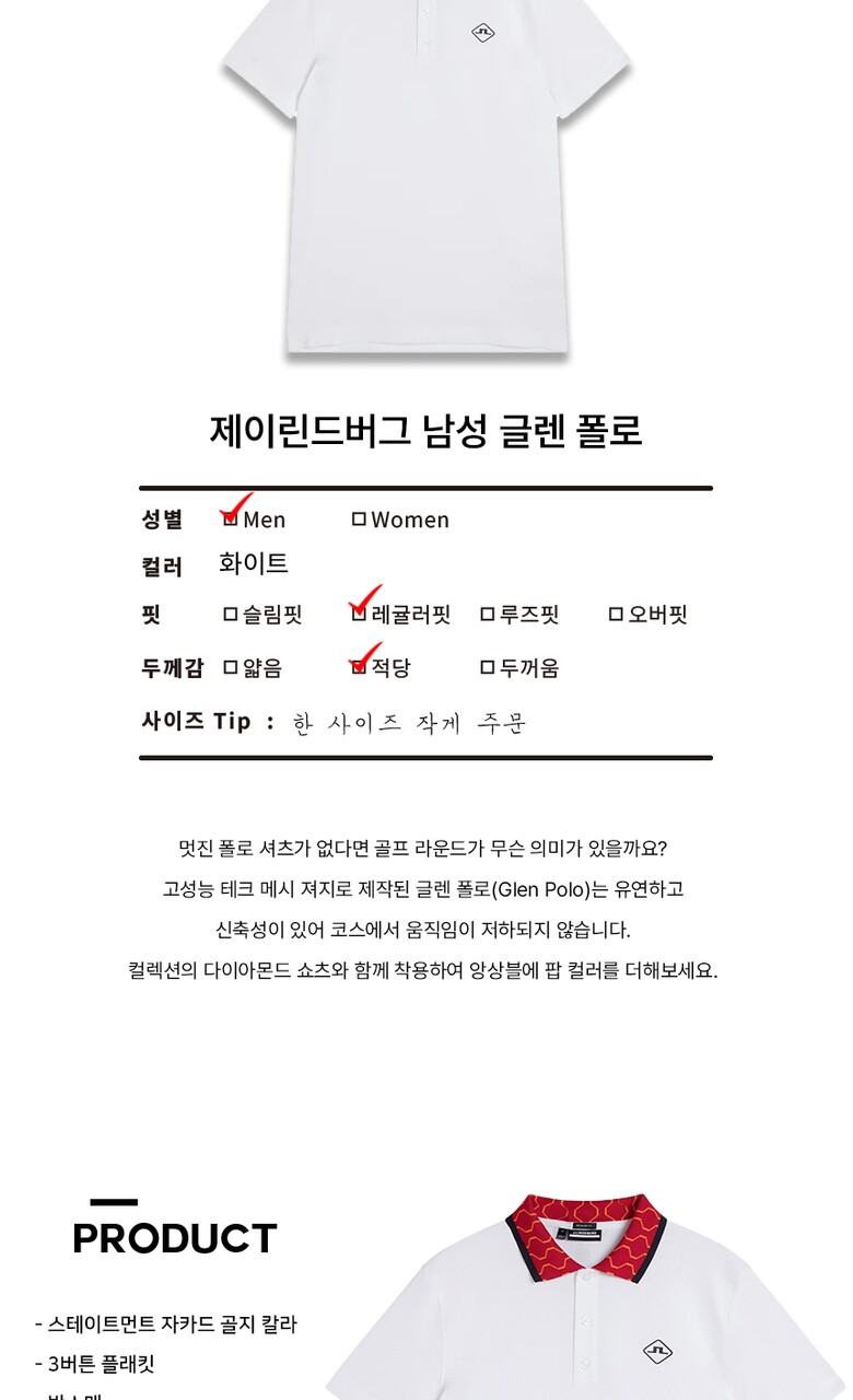 제이린드버그 SS 남성 골프 폴로 글렌 GLEN 화이트
