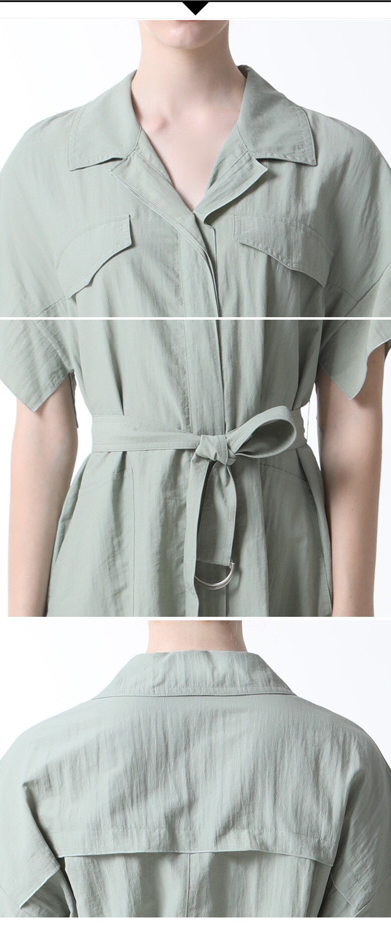벨트 구성으로 실루엣 연출이 가능한 오픈 칼라 반팔 원피스입니다. 브랜드만의 고급소재를 사용하여 퀄리티가 좋으며 고급스러운 무드를 제공합니다. 깔끔하고 베이직한 디자인으로 페미닌한 무드의 아이템입니다.