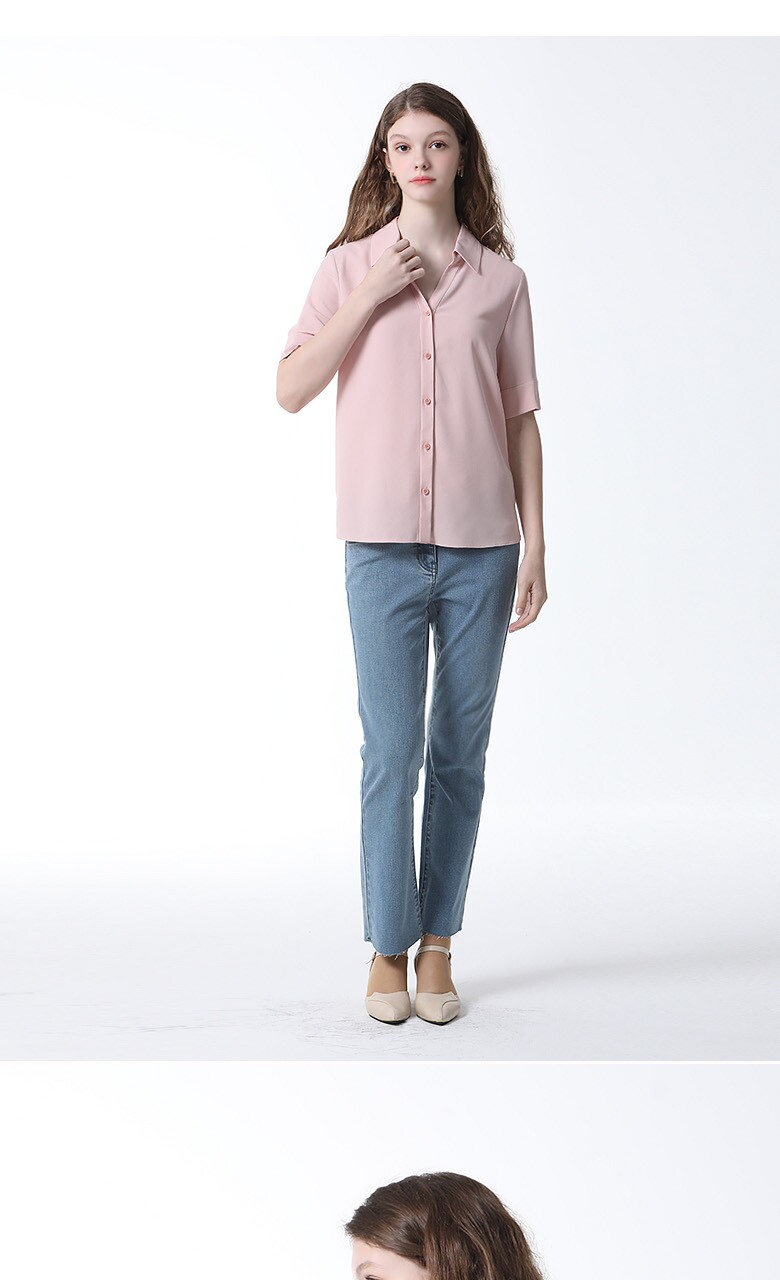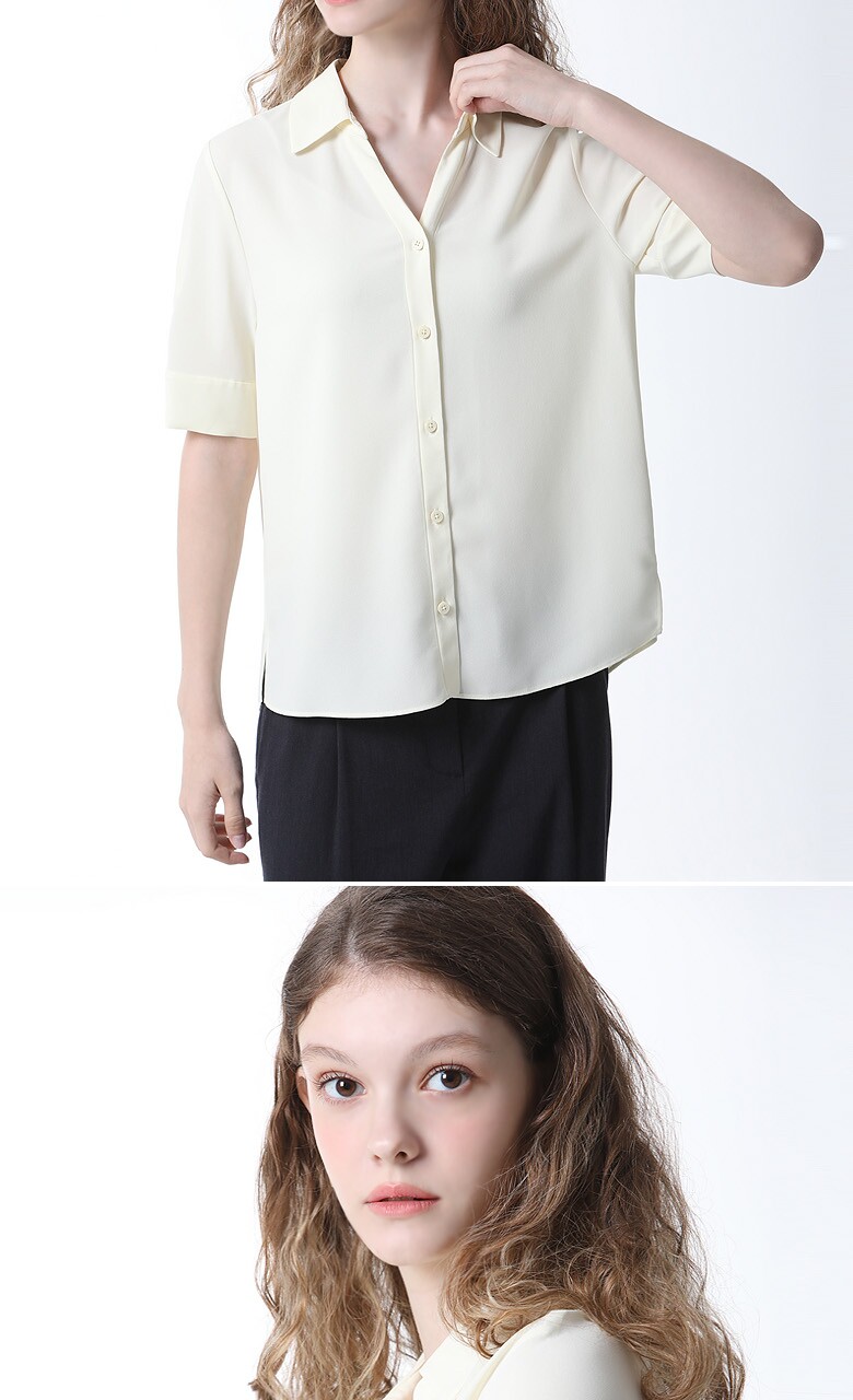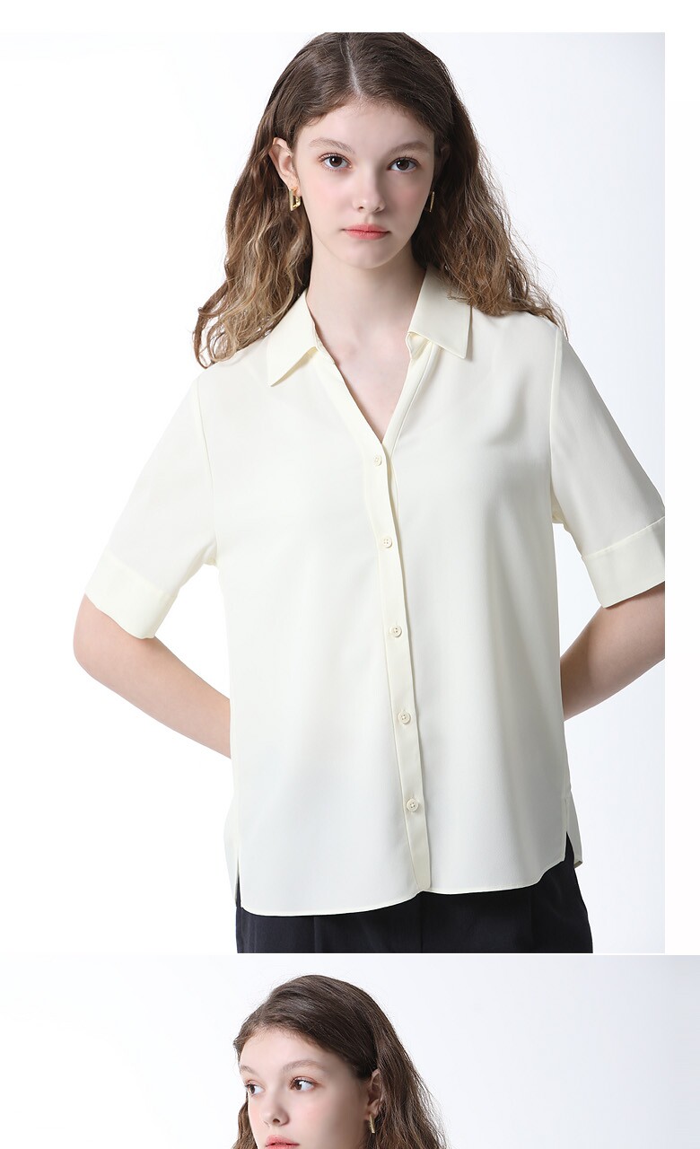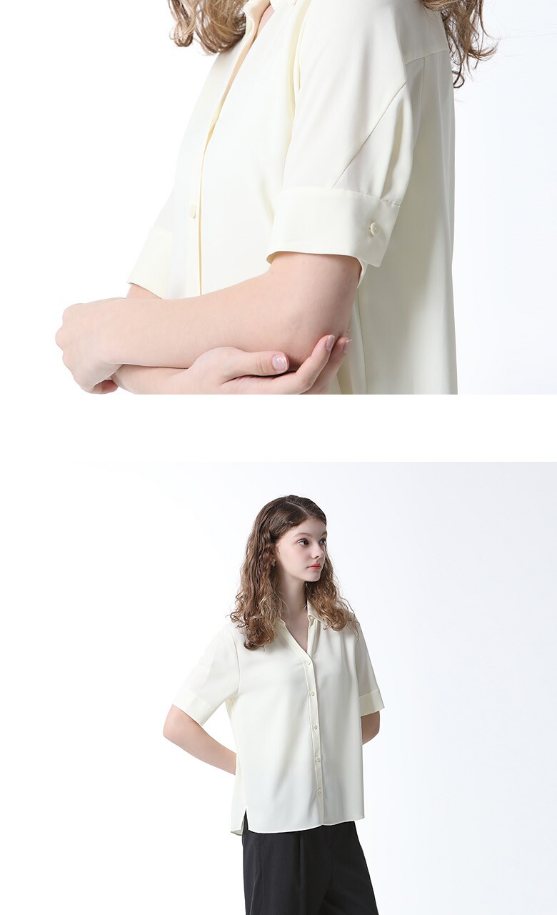 얇은 소재감의 베이직한 5부 소매 오픈 칼라 셔츠입니다. 브랜드만의 고급재질로 부드럽고 유연한 착용감을 선사합니다.