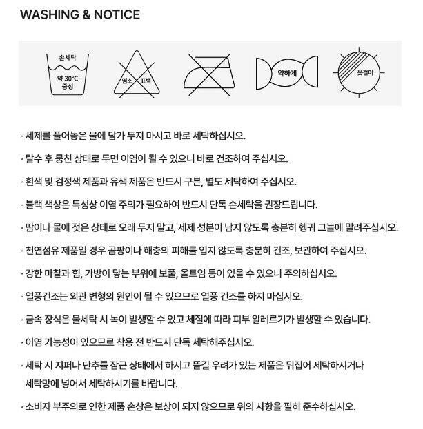 | 6. 세탁방법 및 취급시 주의사항 | 상품상세참조 |