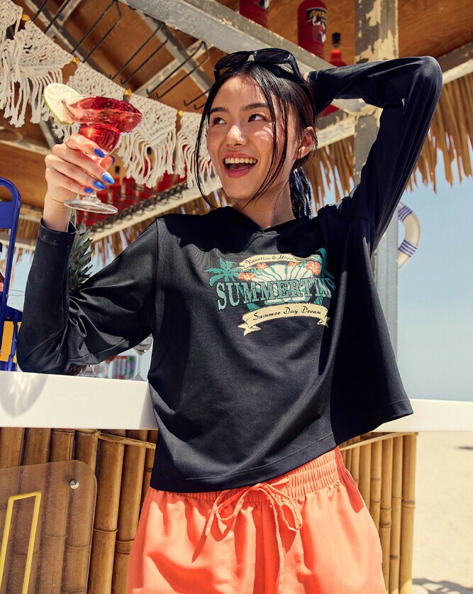 밸롭 여성 서피 후드 크롭 래쉬가드 레몬 BB2WHDW001