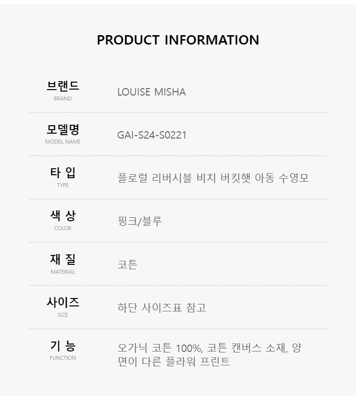 루이스미샤 GAI-S24-S0221 (Lajik) 플로럴 리버시블 비치 버킷햇 아동 수영모