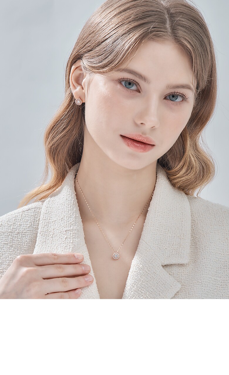 14K 플라워 포인트 큐빅 목걸이 EL14NN026