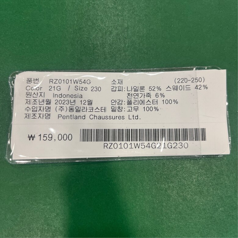 | 1. 제품 소재 (운동화인 경우에는 겉감, 안감을 구분하여 표시) | 상품상세참조 |
