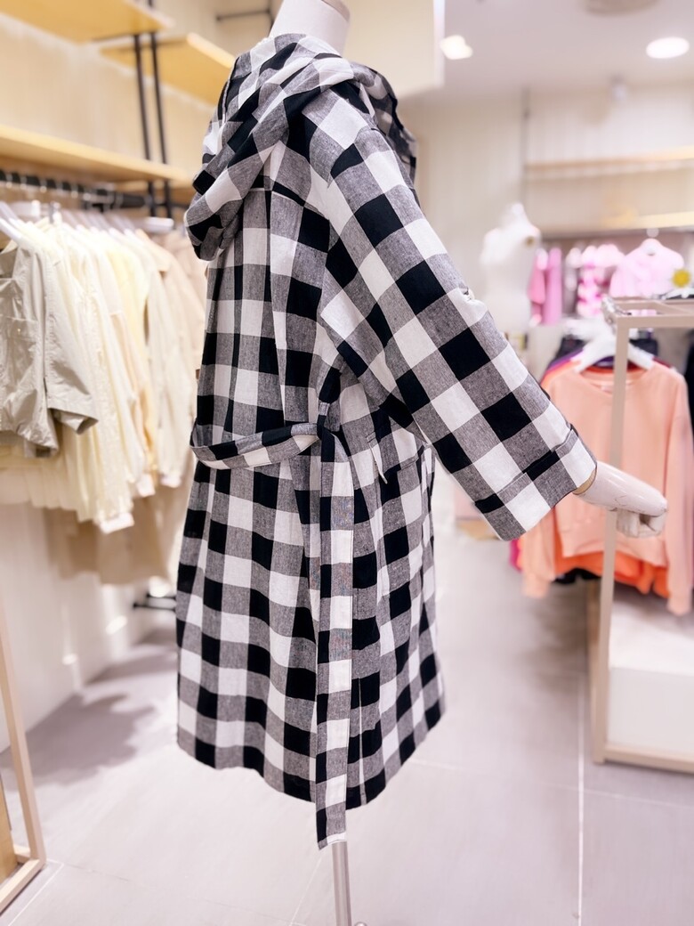 포인트룩으로 활용도 높은후드 점퍼를 소개해드립니다.?큼직큼직한 체크패턴이 돋보이는시트무드 블랙컬러로 준비했답니다.?오버핏라인에? 적당한 롱기장감이라상체커버는 물론?마소재라시원함과 고급스러움의 아우라를한껏 뿜어내는데요.허리끈이 탈부착되어투웨이가 가능한 디자인이라활용성 또한 빠지지않는답니다.??가벼운 착용감과그냥 툭 걸추어만주어도멋스러움을 힘껏 뽑낼 체크후드 점퍼입니다.?