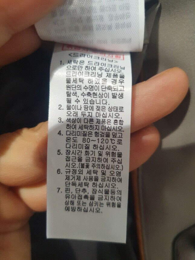 | 6. 세탁방법 및 취급시 주의사항 | 드라이크리닝 |