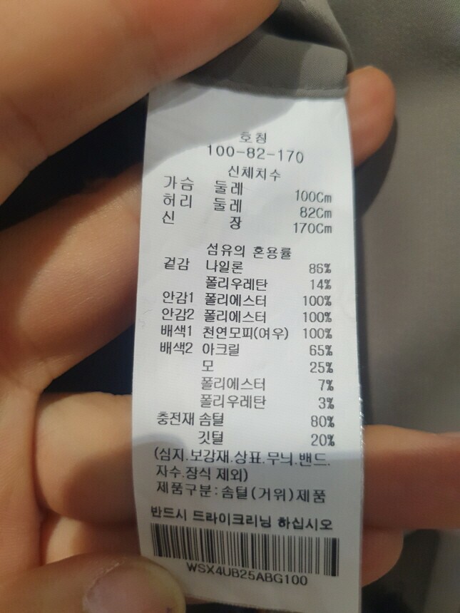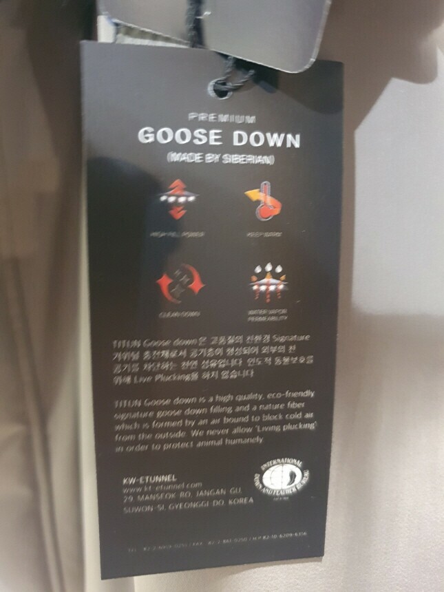 충전재 : 거위(솜털) 80% , 거위(깃털) 20%