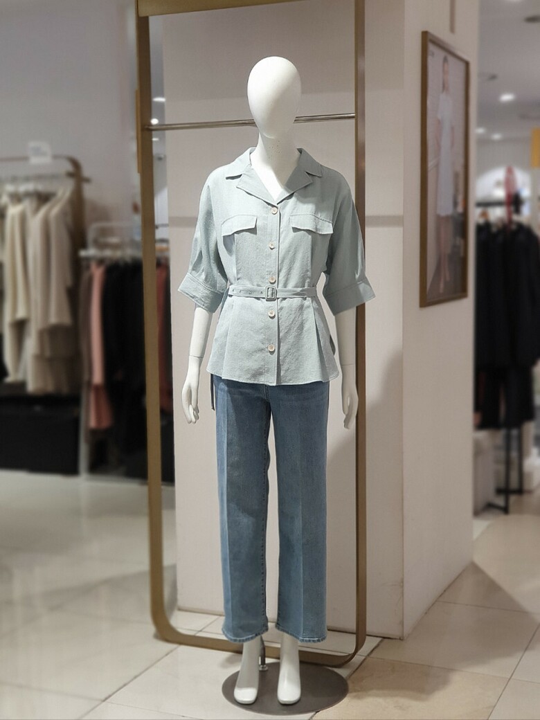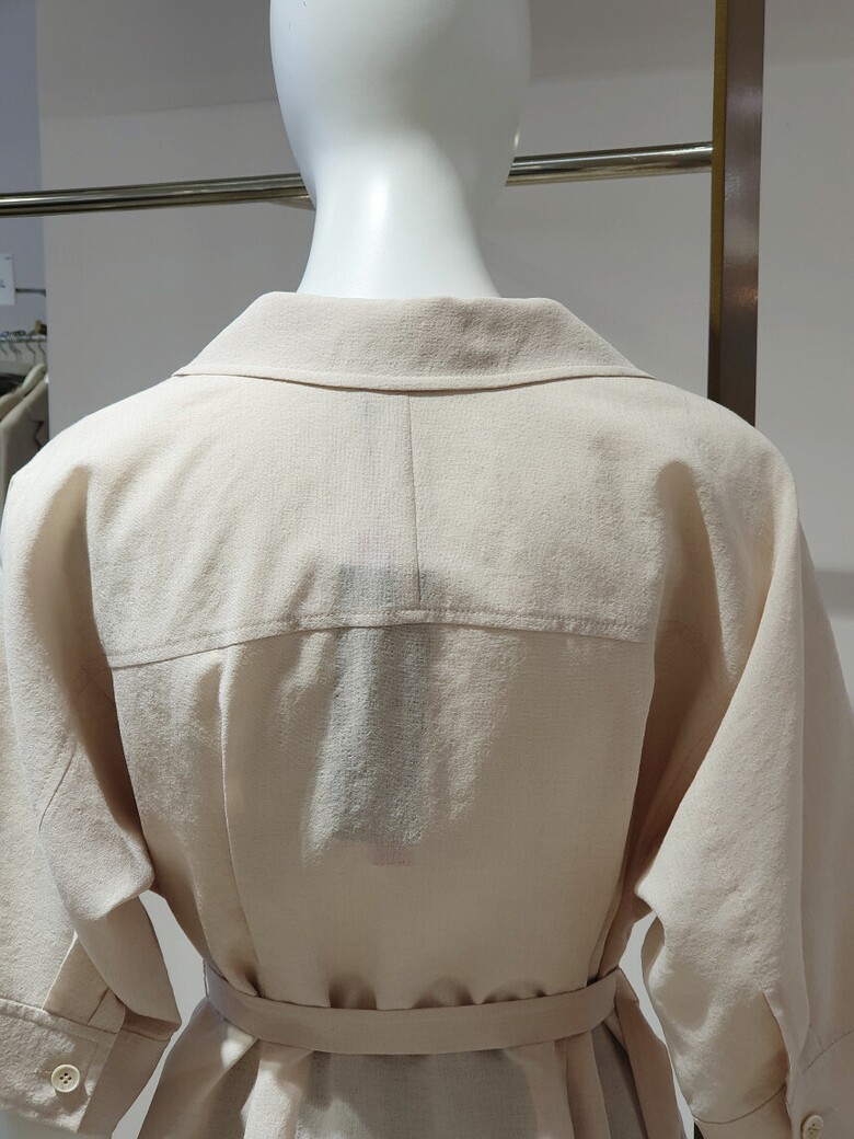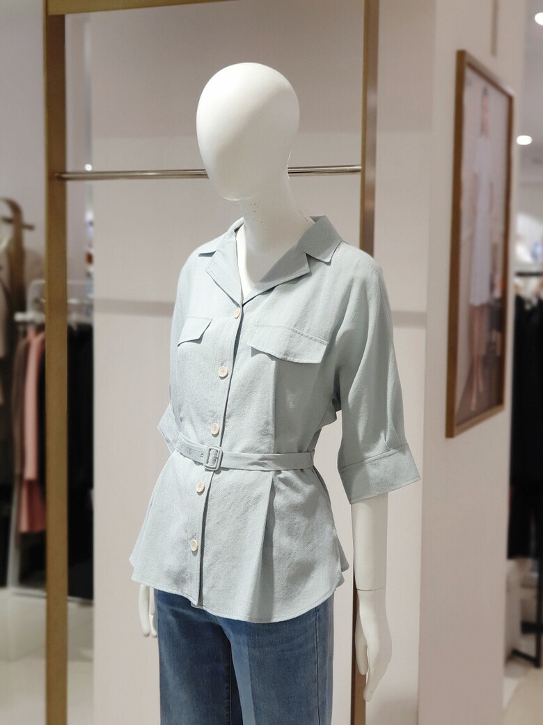 플랩 포켓 장식과 벨트 구성으로 포인트 연출이
