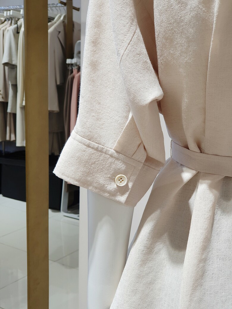턱 디테일로 볼륨감을 더해주는 슬리브 라인이