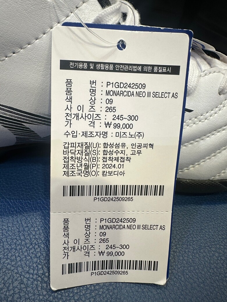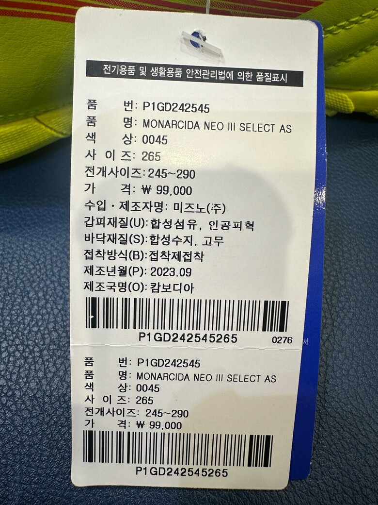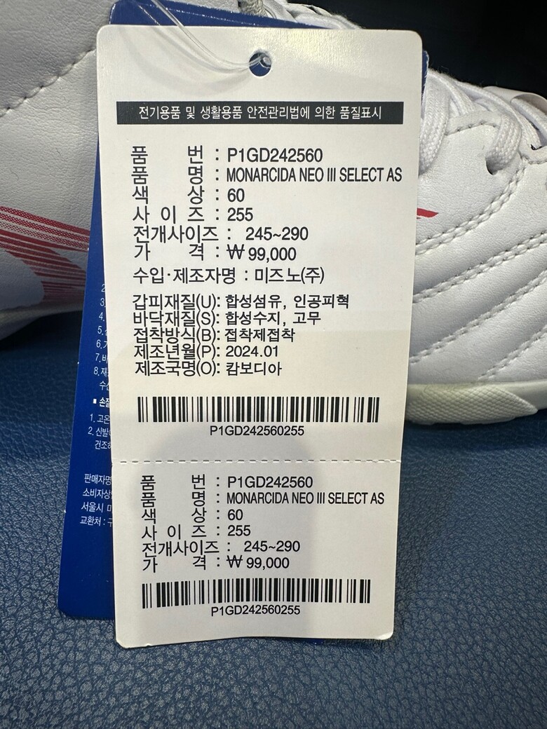 미즈노 모나르시다 네오 3 셀렉트 AS 풋살화 P1GD2425