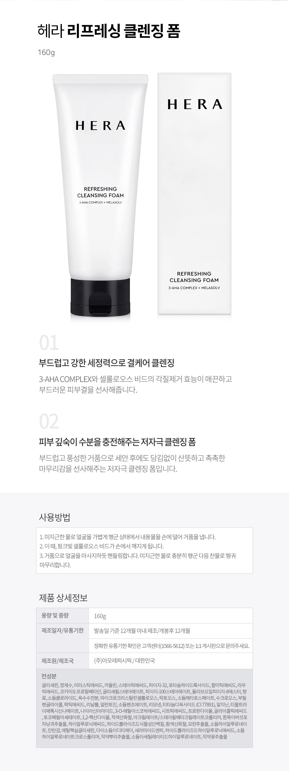 헤라 리프레싱 클렌징 폼 160g 수분 각질 저자극케어