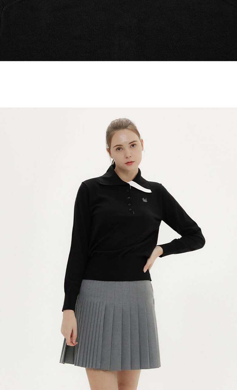 듀빅 여성 배색 와이드 카라 니트스웨터 DD3WSW253