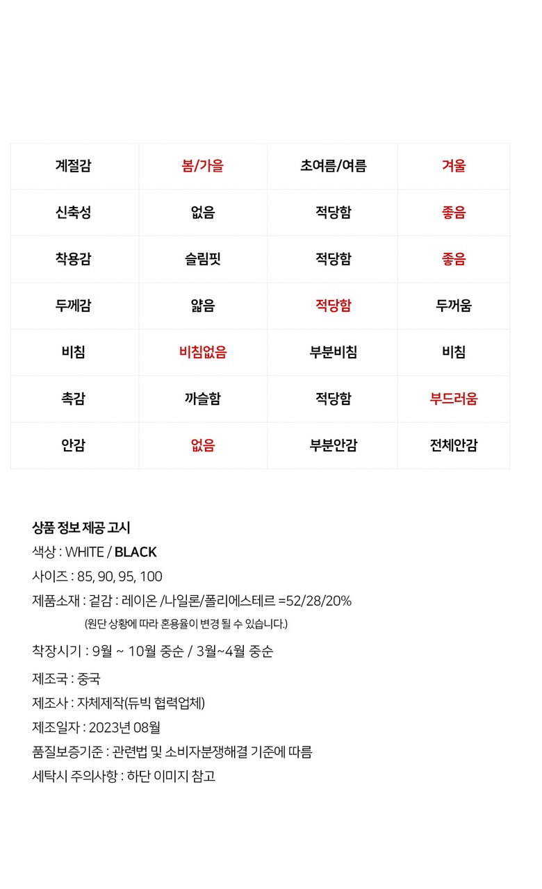 1. 제품 소재 (섬유의 조성 또는 혼용률을 백분율로 표시, 기능성인 경우 성적서 또는 허가서) | 상품 이미지 참조 |