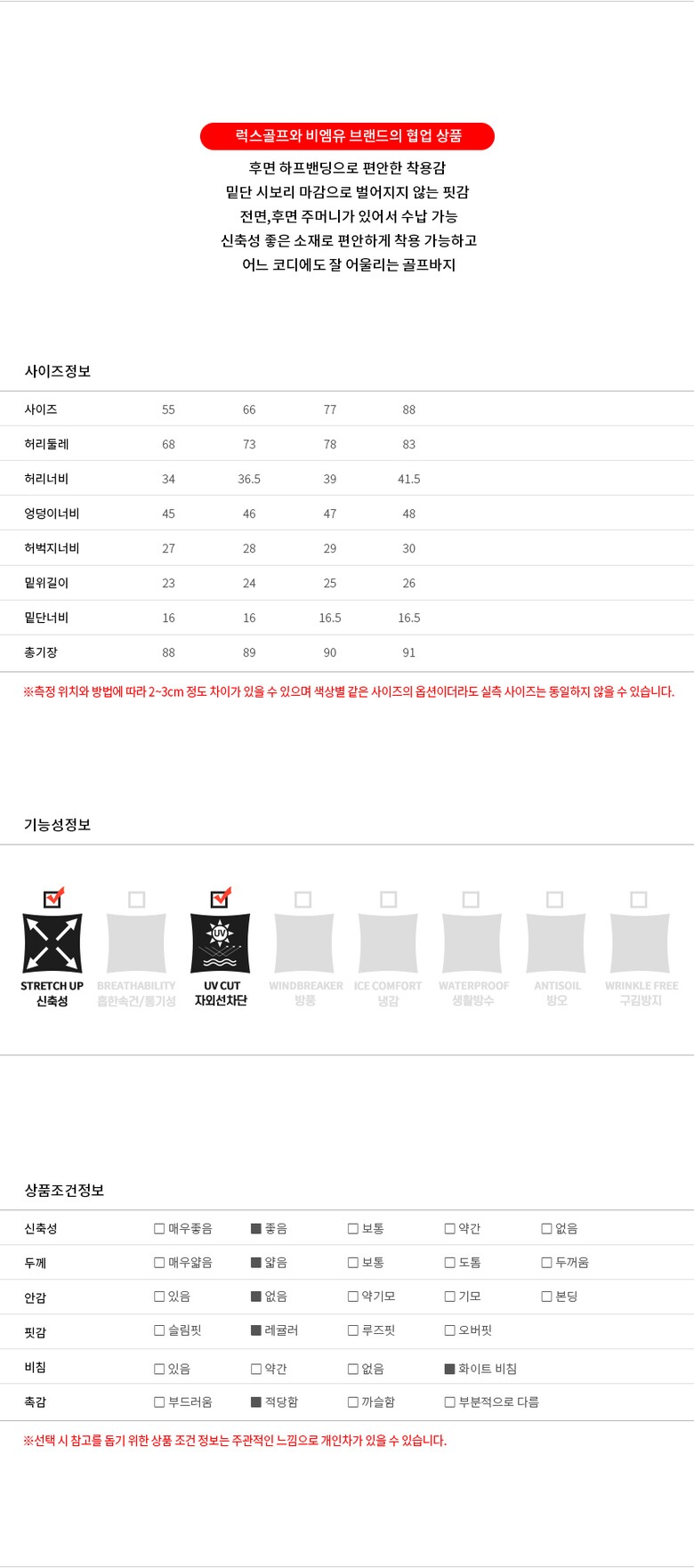 보스케 여성 여름 골프웨어 반밴딩 밑단 시보리 배색 골프바지 L240711