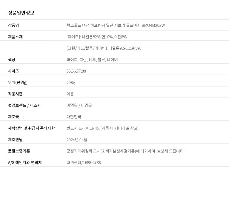 | 9. 상품별 세부 사양 | 상세설명참조 |