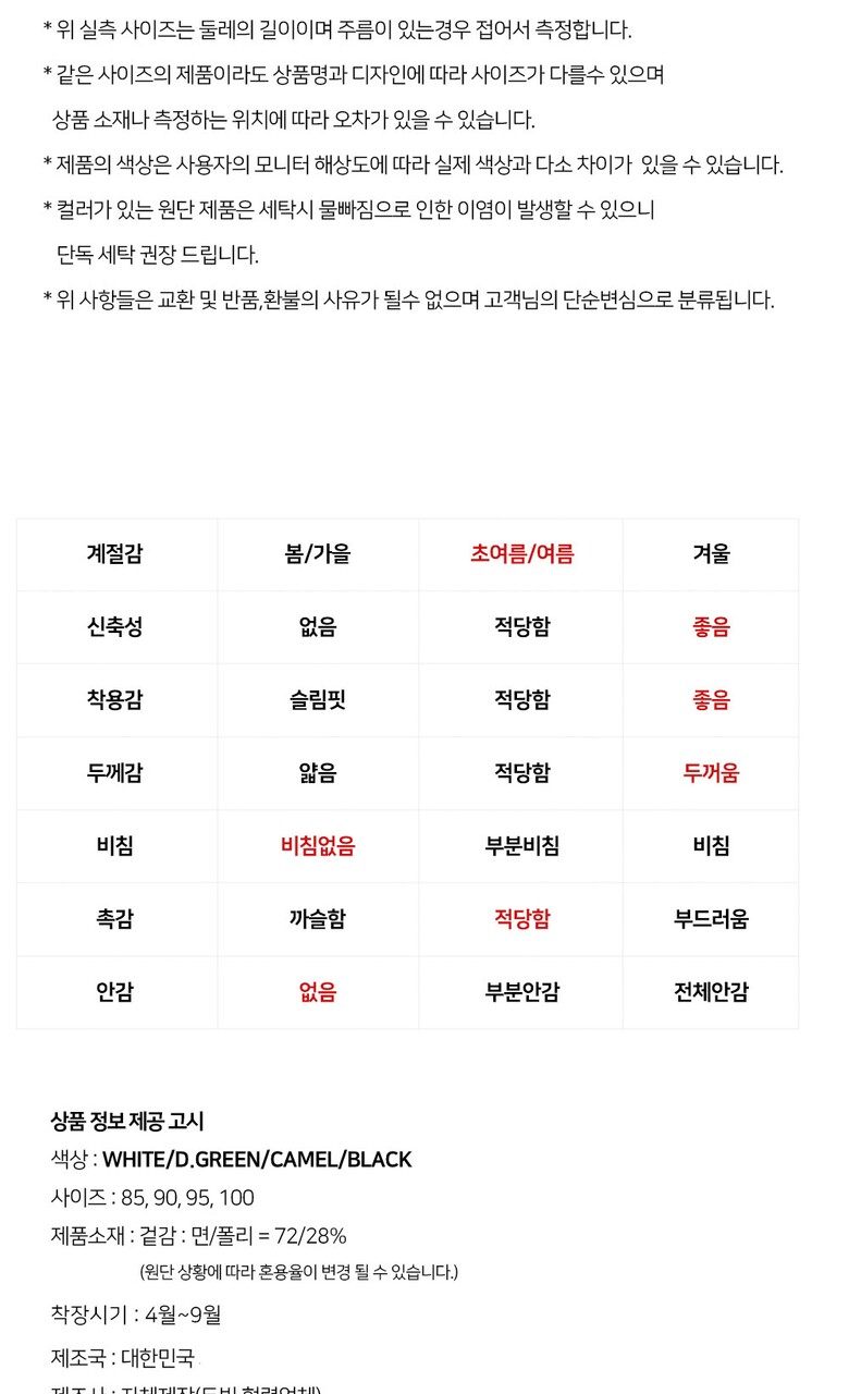 1. 제품 소재 (섬유의 조성 또는 혼용률을 백분율로 표시, 기능성인 경우 성적서 또는 허가서) 상품 이미지 참조