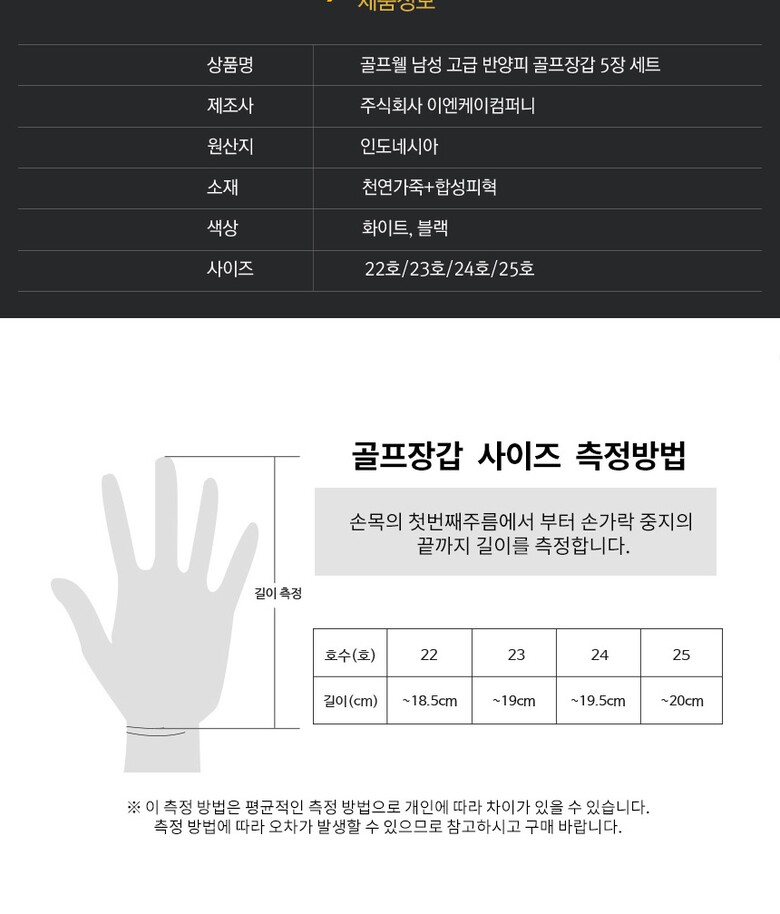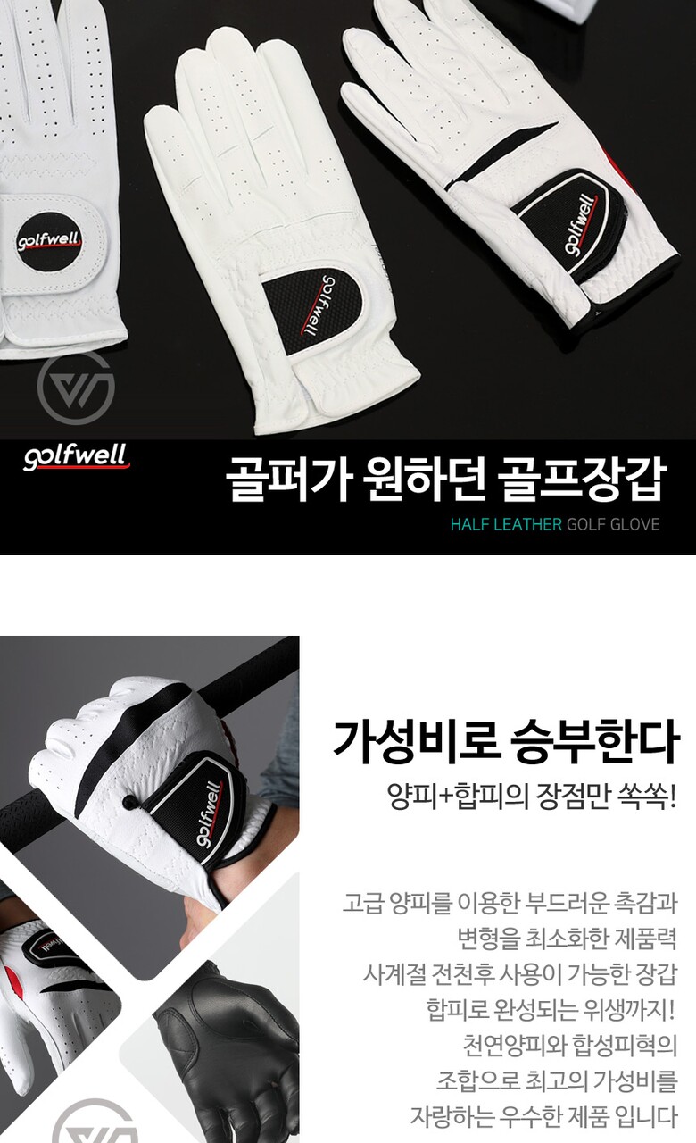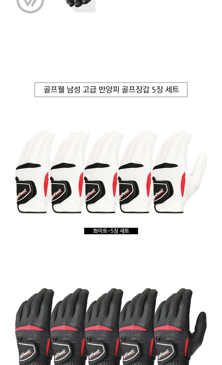 골프웰 남성 반양피 골프장갑 5장-1세트 (GW151-GV03)
