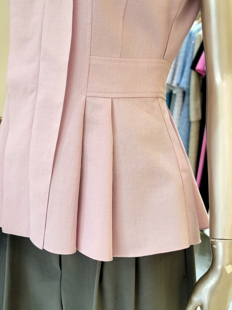 슬림한 허리 핏의 페플럼 라인이 어우러진 블라우스입니다.