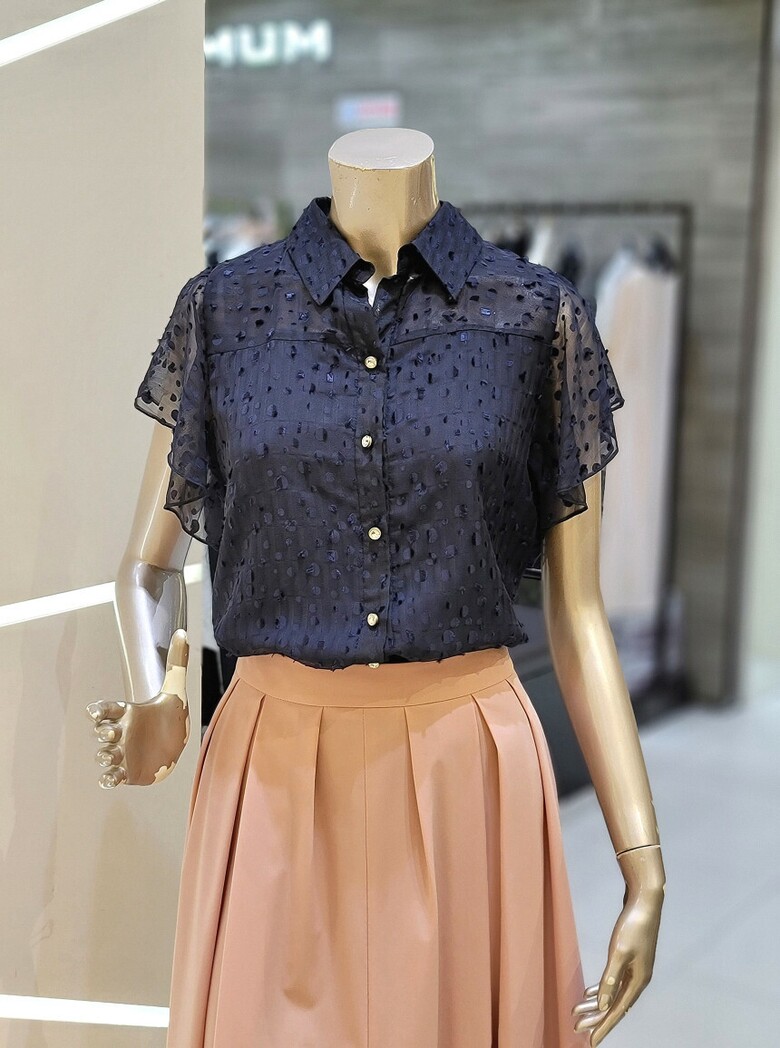 도트 훌 슬리브 블라우스 MXBAWB4140