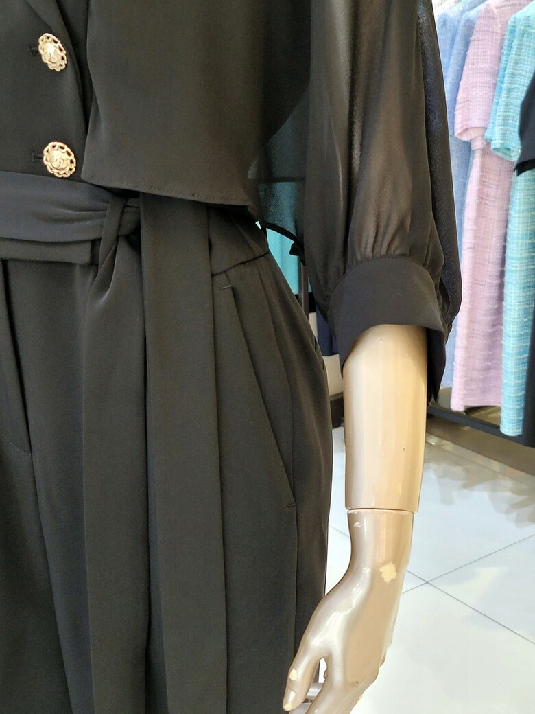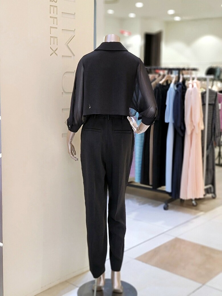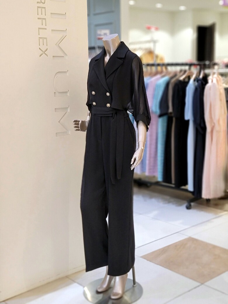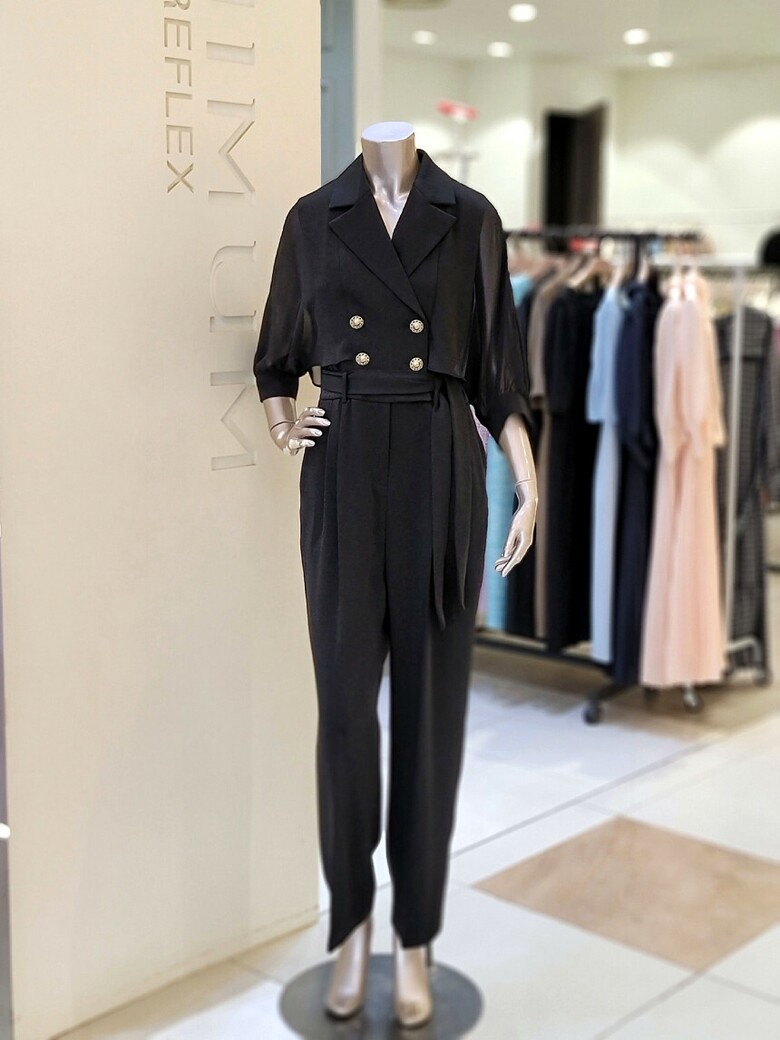 테일러드 칼라와 메탈 버튼으로 모던한 분위기를 연출해 주는