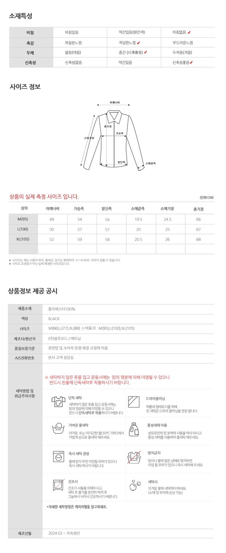 • 처음 배송된 상품상태와 다를 경우(세탁/착용 후 외출하신 경우) 반품이 불가합니다.