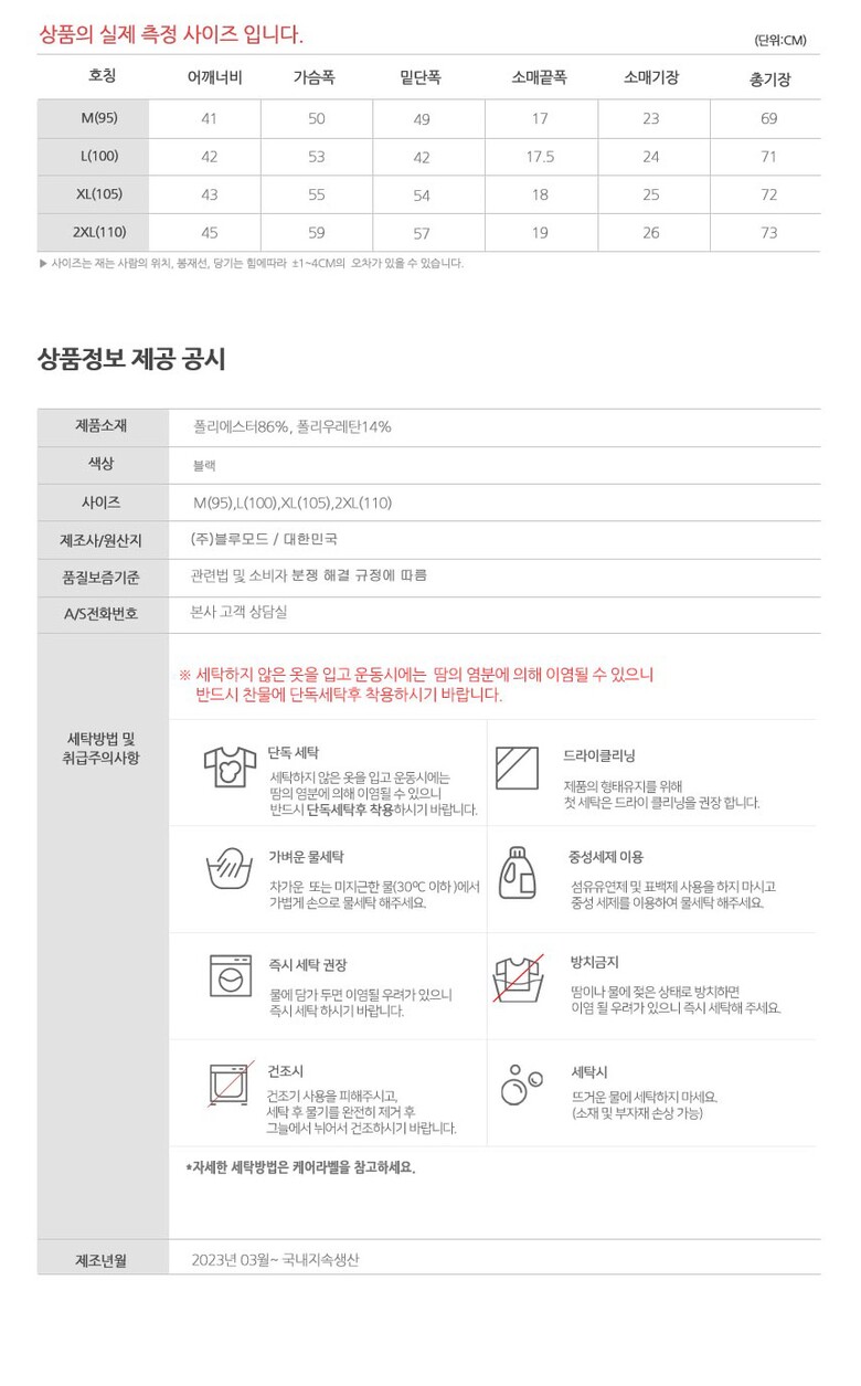 6. 세탁방법 및 취급시 주의사항 | 상품 이미지 참조 |