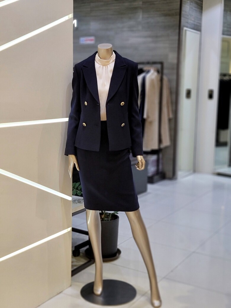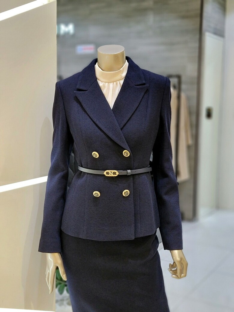 여성스러운 허리 라인을 살린 뉴룩 스타일의 더블 재킷입니다.