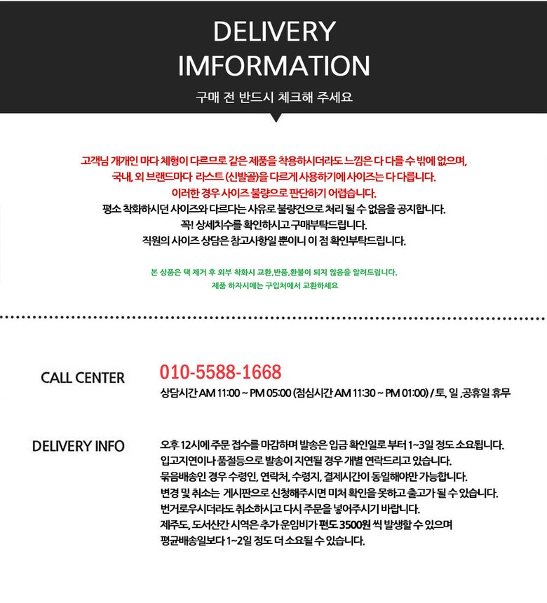 • 배송기간은 약 3~5일정도 소요됩니다. ( 토,일, 공휴일 제외 )