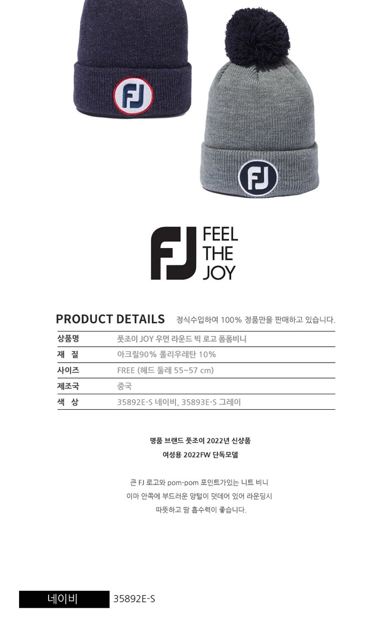 풋조이 JPN 여성 빅로고 폼폼 방울 비니 FJ35892E