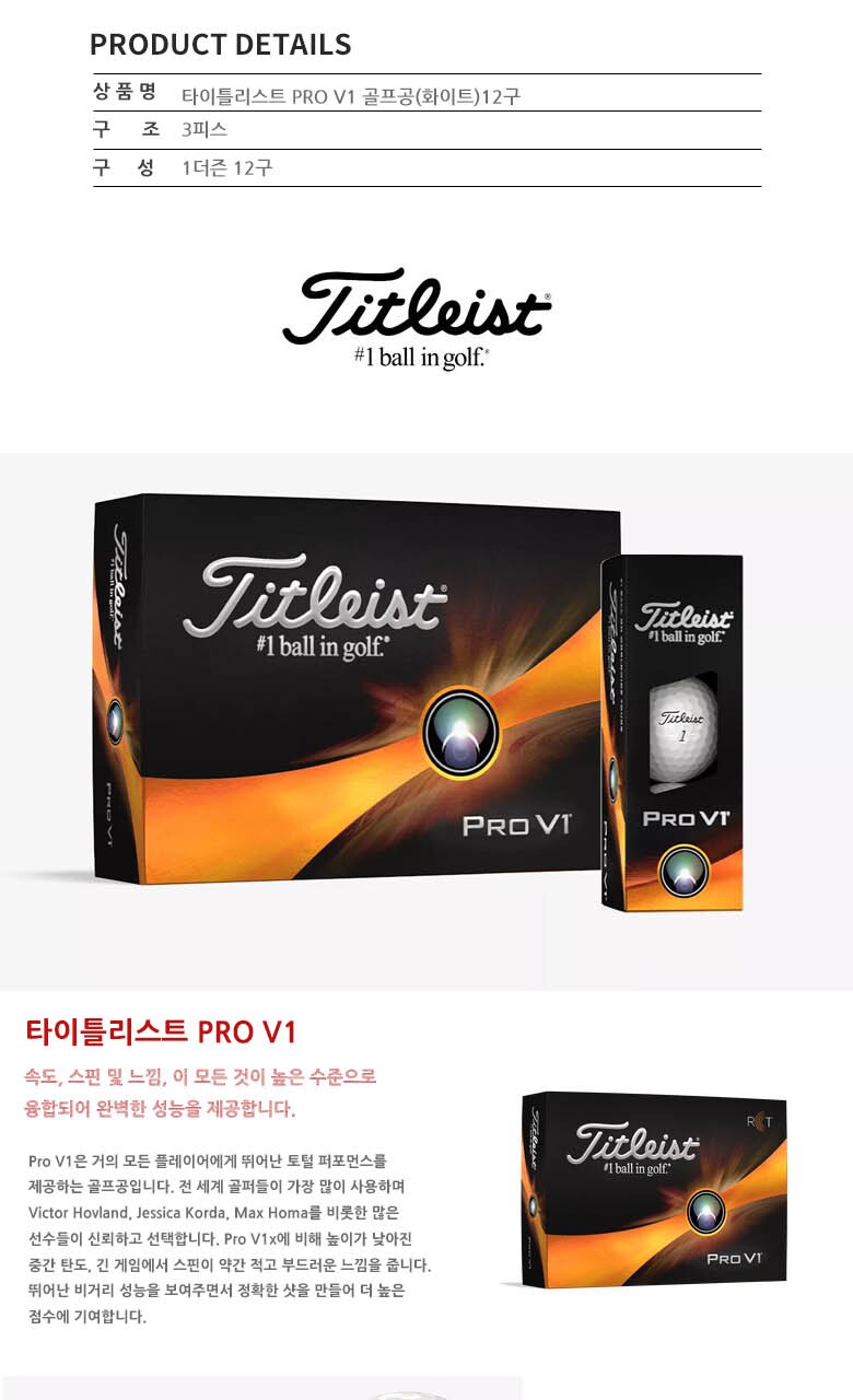 타이틀리스트 PRO V1 3피스 골프공/골프볼 1더즌