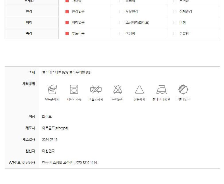 6. 세탁방법 및 취급시 주의사항 | 상품 이미지 참조 |