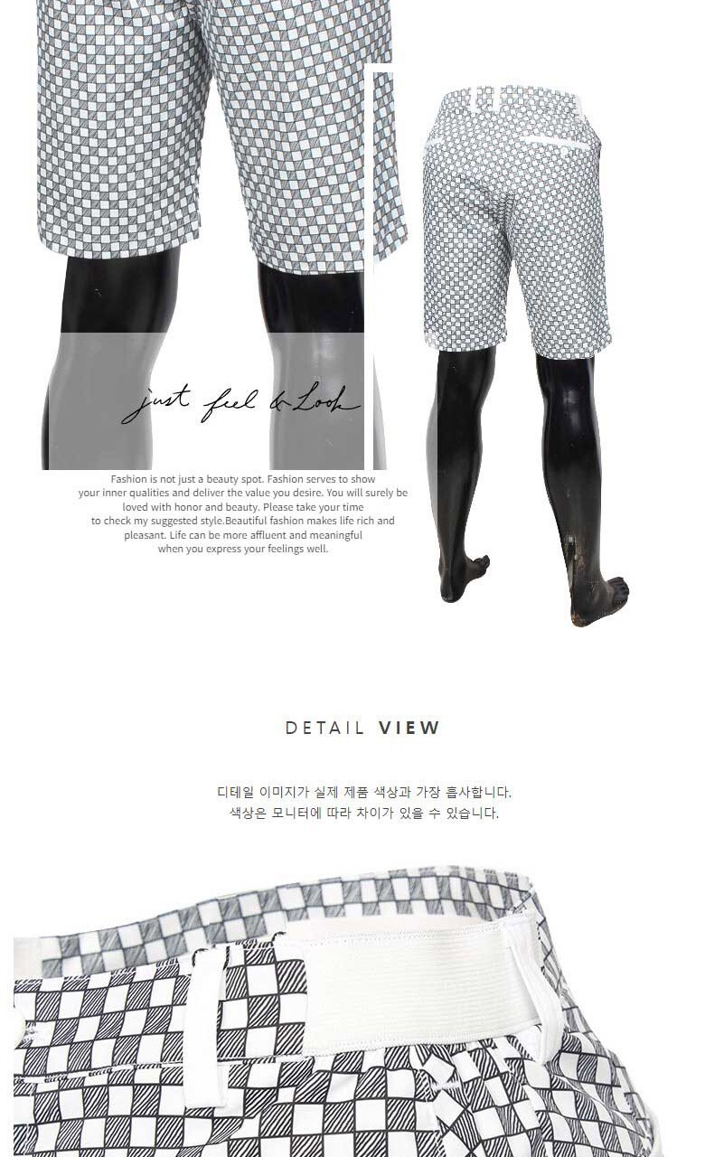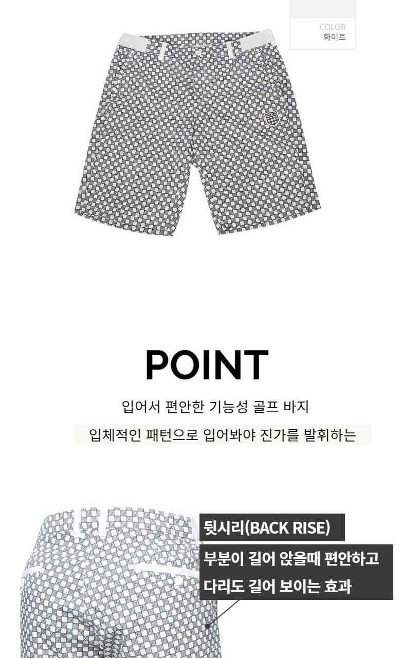 그렌에코 남성 스판 사각체크 골프반바지 GES24802WH