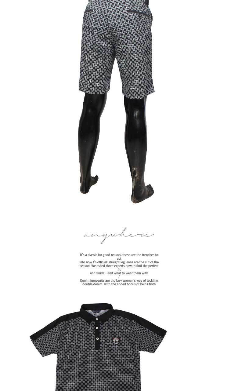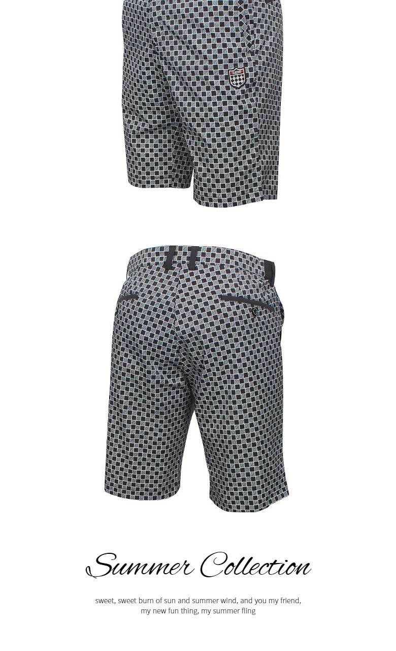 그렌에코 남성 스판 사각체크 골프반바지 GES24802