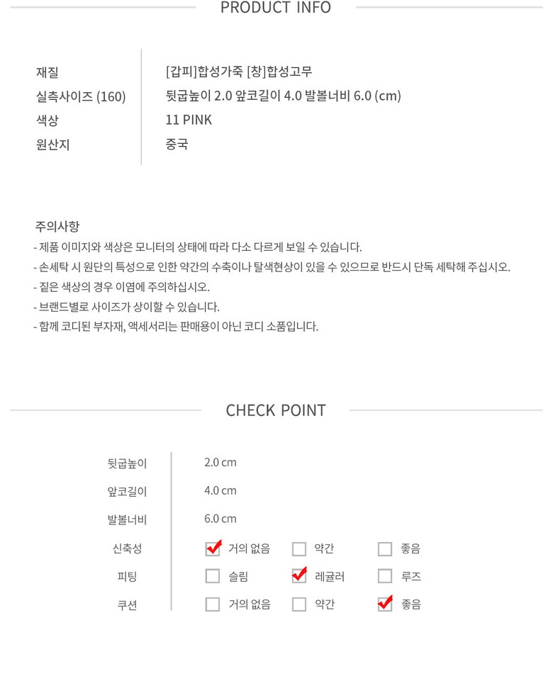 1. 제품 소재 (운동화인 경우에는 겉감, 안감을 구분하여 표시) | 상품상세참조 |