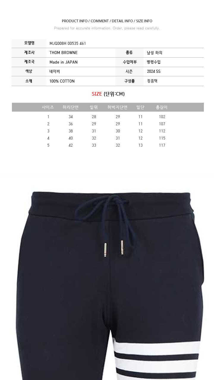 톰브라운 24SS 클래식 사선 코튼 트레이닝팬츠 네이비 MJQ008H 00535 461