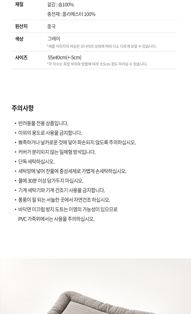 모던하우스 펫본 사계절 누빔 방석 그레이 PT0824004
