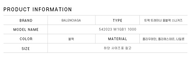 발렌시아가 542023 W1GB1 1000 트랙 트레이너 올블랙 남성 스니커즈