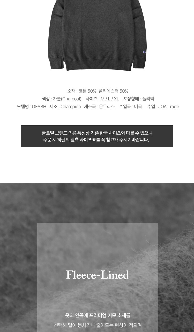 [챔피온] 그래픽 스몰로고 스웨트셔츠 CH-GF88 차콜