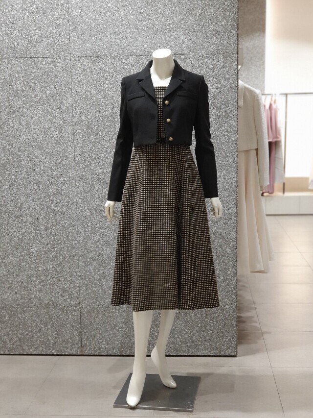 여성스러운 플레어라인 원피스와와 자켓이 예쁜 아이입니다. 원피스만 따로 입으셔도 되고 자켓과 함께 코디하셔도 됩니다.