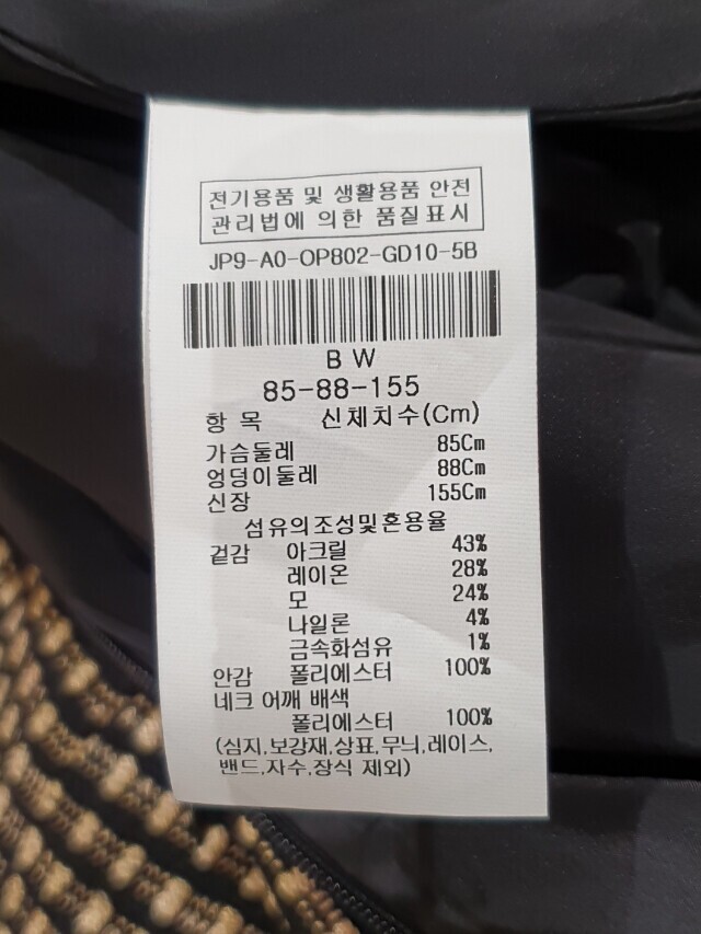 1. 제품 소재 (섬유의 조성 또는 혼용률을 백분율로 표시, 기능성인 경우 성적서 또는 허가서) 상품상세참조