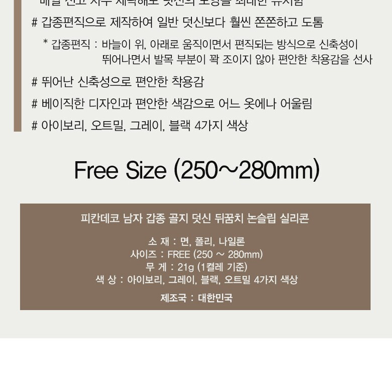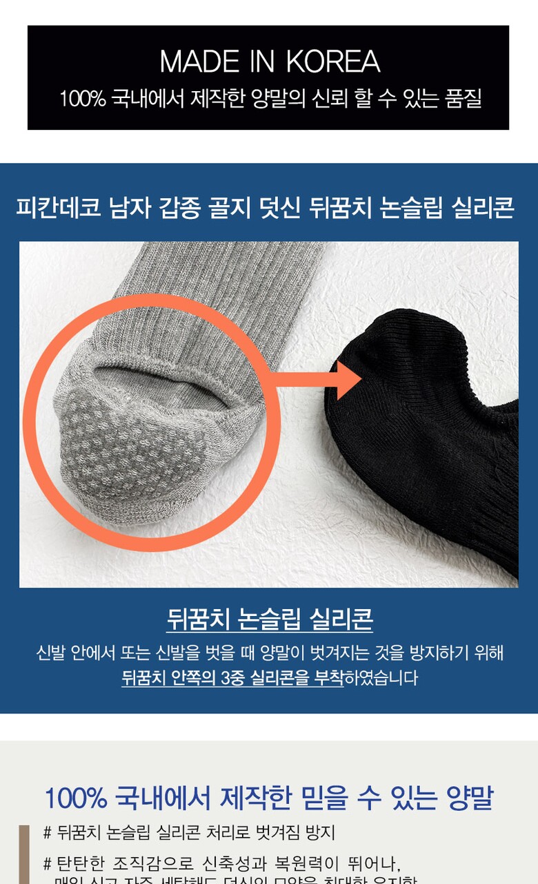 국산05 남자 갑종골지덧신 뒤꿈치실리콘처리 1켤레