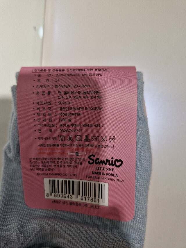 유행하는 산리오캐릭터 아이들이 좋아하는 쿠로미 시나모롤 포차코 양말입니다.