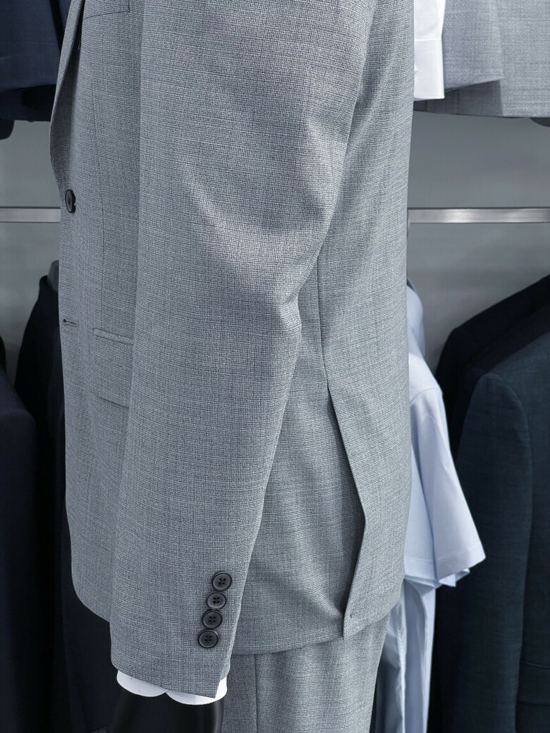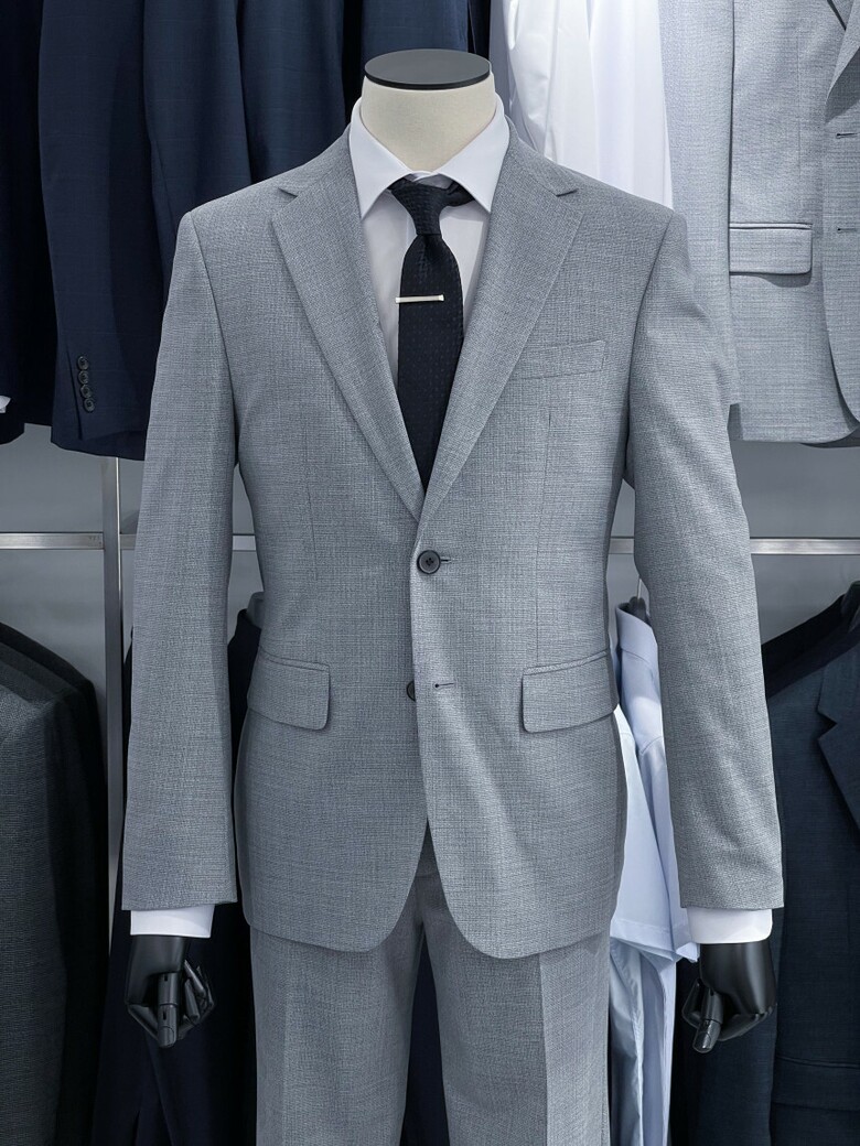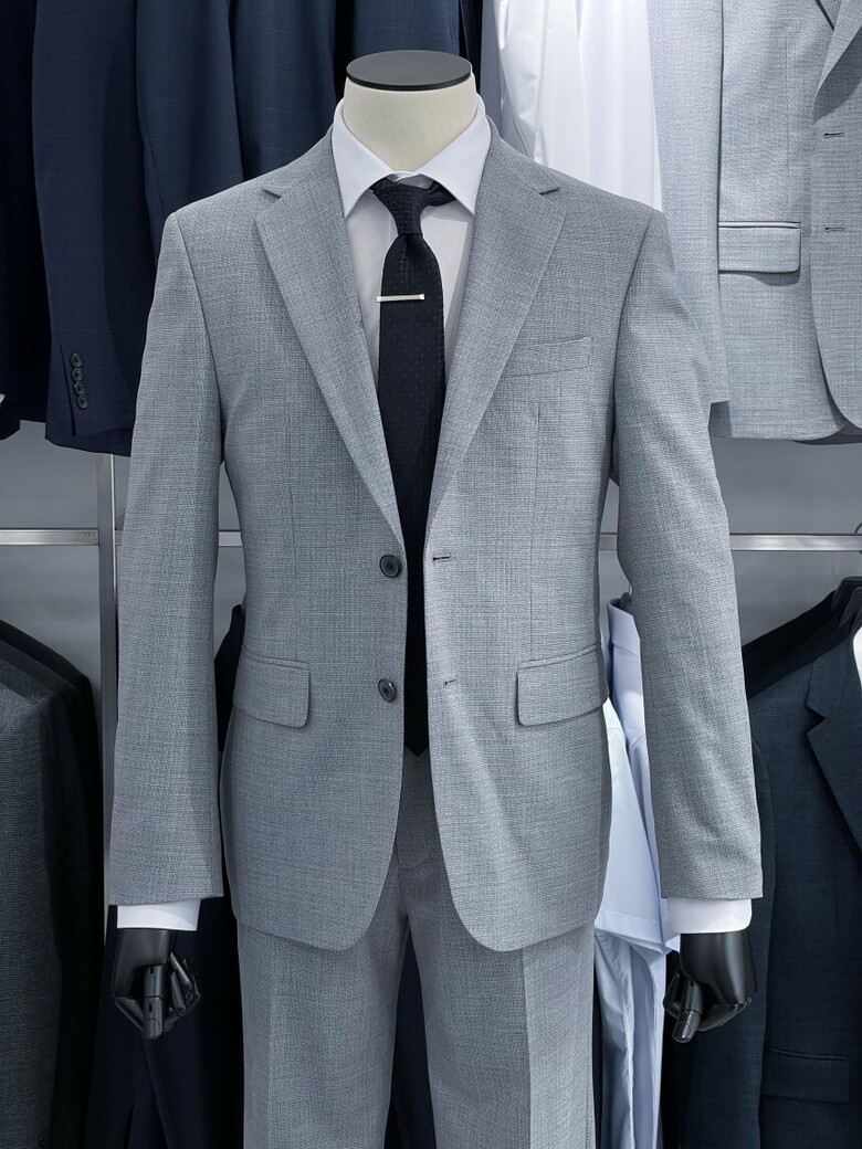 편안하면서도 깔끔한 스타일의 정장입니다.