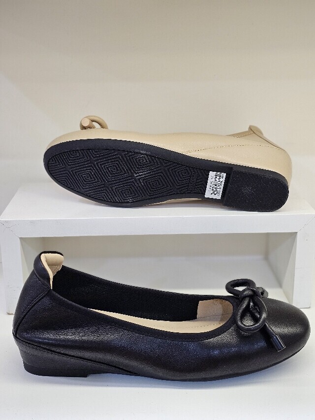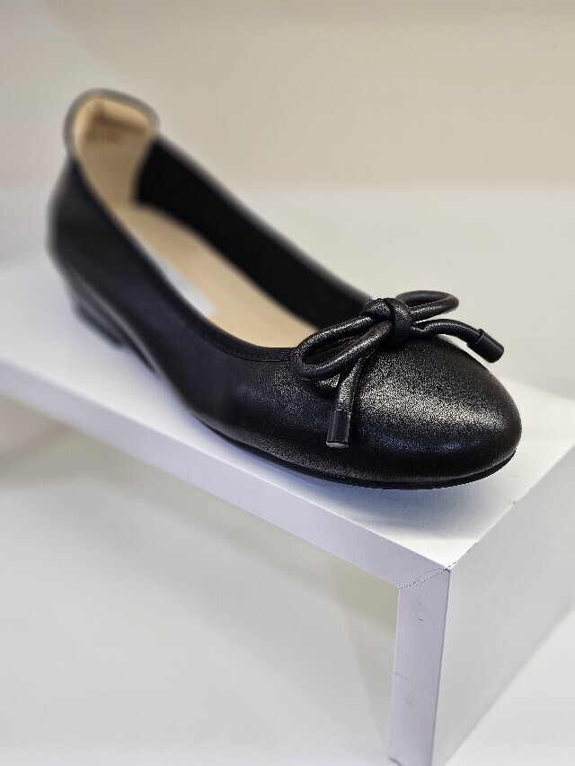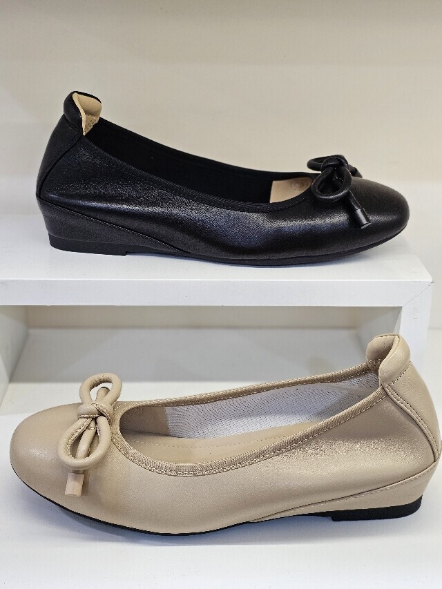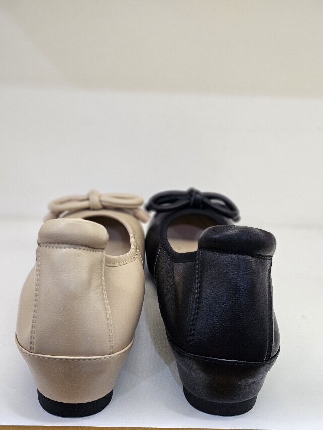 리본장식 포인트인 가죽 소재 속굽 플렛