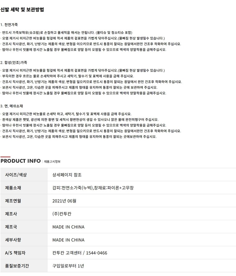 6. 취급시 주의사항 | 상세페이지 참조 |
