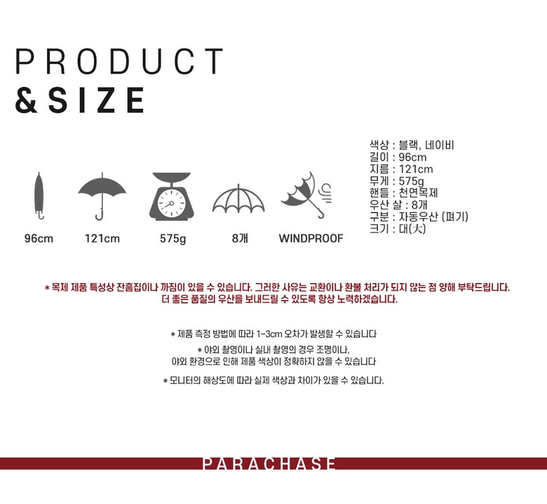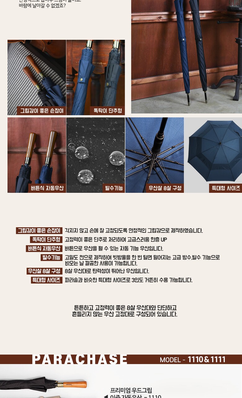파라체이스 곡자 우드그립 이중 자동 장우산 1111
